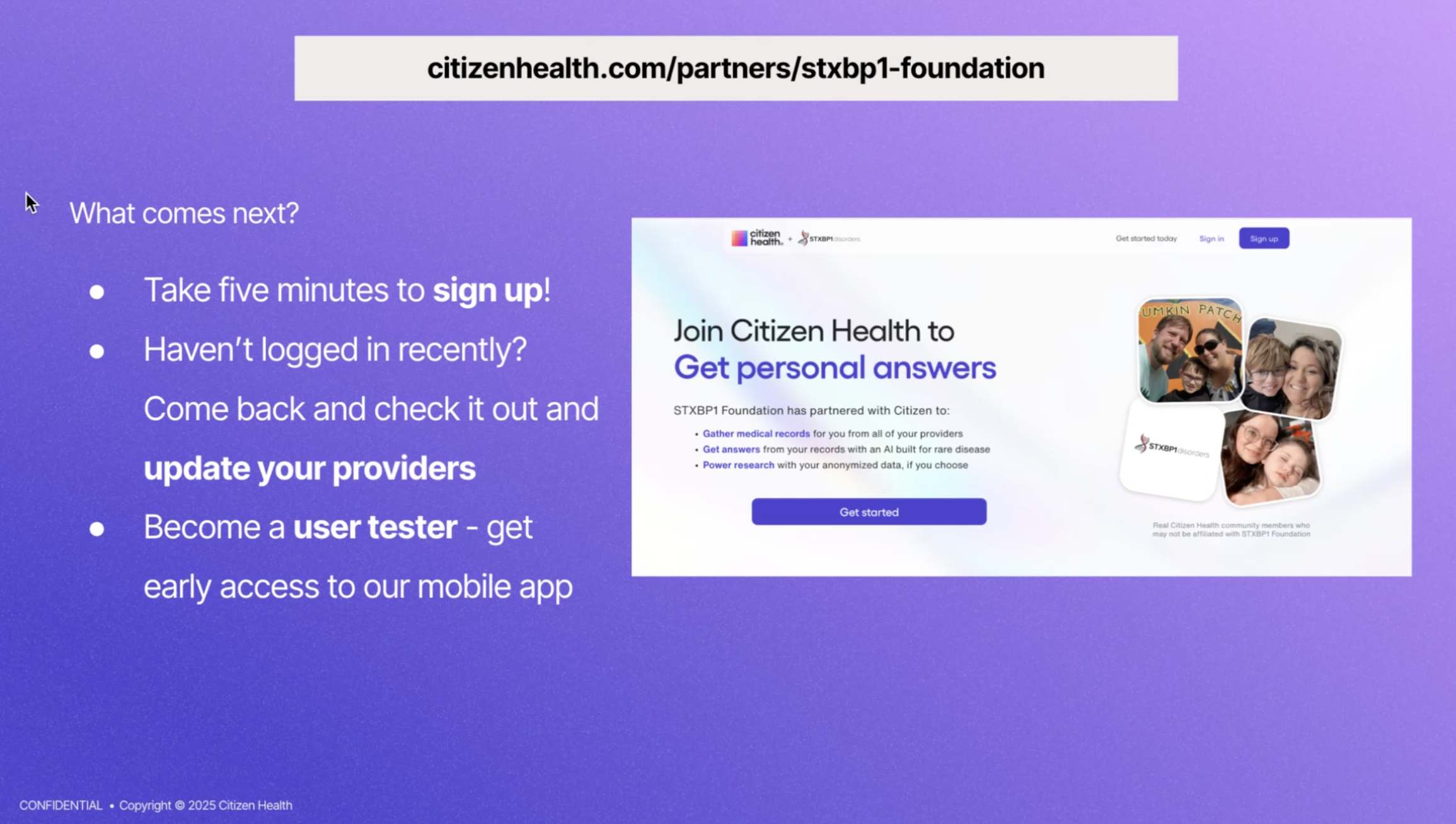 Watch a webinar recording on our YouTube channel here to learn more about Citizen Health and STXBP1-related disorders.